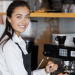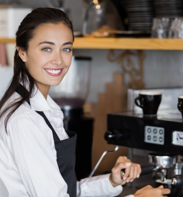 Zubereitung von Kaffeespezialitäten, Getränke servieren und Service am Messestand