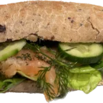 Olivenbrot mit Graved Lachs, Gurken und Dill