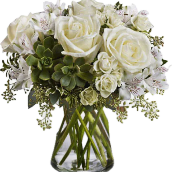 Weiße Lilien und Rosen Arrangement