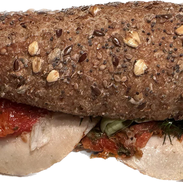 Tomaten Ciabatta mit Pute, saures Gürkchen, Paprika