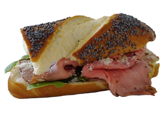 Mini Laugenstangen mit Roastbeef, Rucola, Parmesan