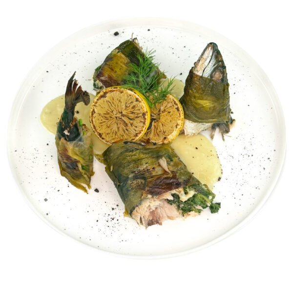 Makrele in Lauchblättern gefüllt mit Spinat und Ricotta