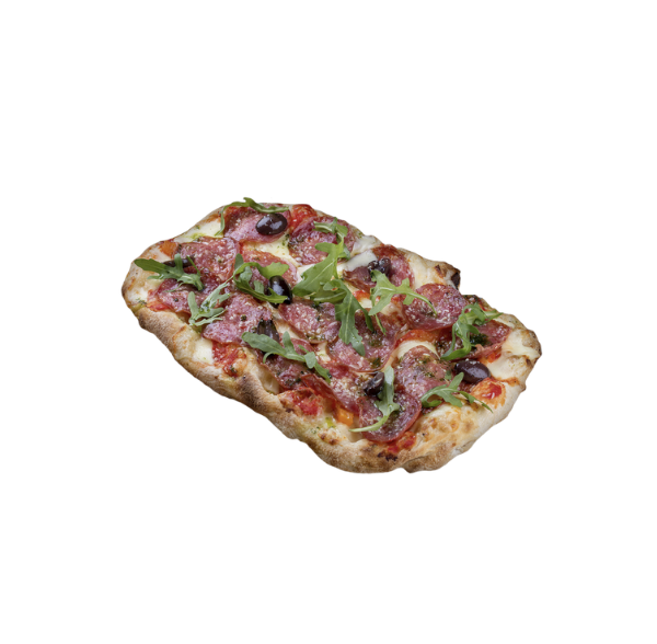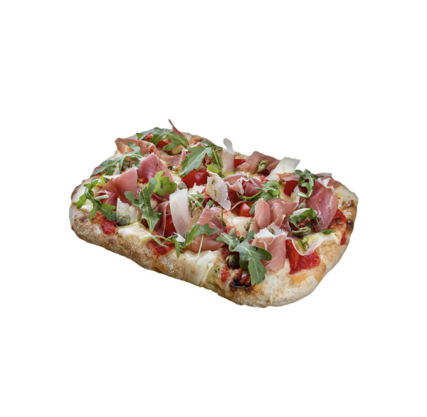 Pinsa mit Serrano, Mozzarella mit Tomaten