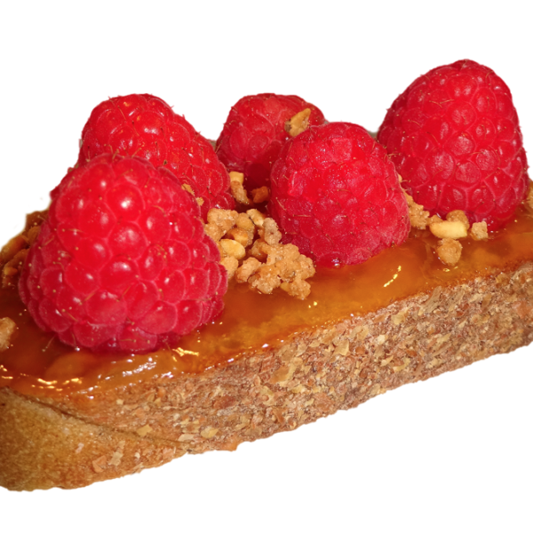 Süße Canapes mit Aprikosenmarmelade, Himbeere, Krokant
