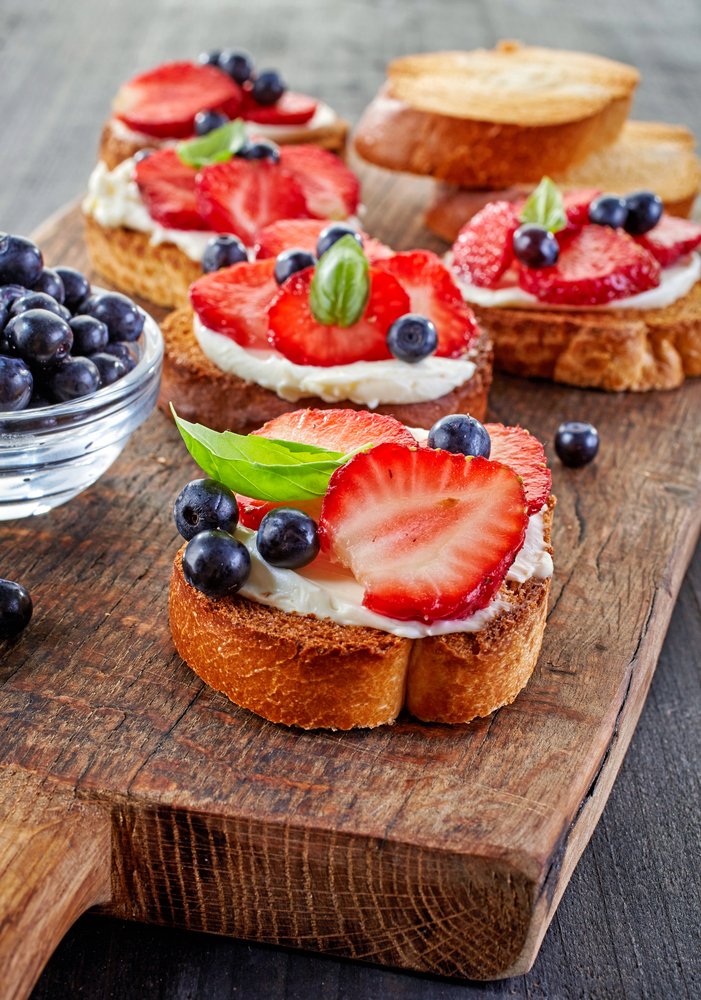 Süße Canapes mit Frischkäse, Erdbeermarmelade, Aprikose