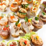 diverse gemischte Canapes mit Schinken, Käse, Salami, Pute, Streichkäse, Serrano und weiteren Sorten.