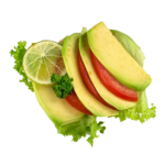 Halbe Brötchen mit Avocado, Tomaten, Rucola