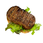 Halbe Brötchen mit saftigem Beefsteak