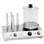 Temperaturbereich: 0 – 110 °C Abmessungen Hot Dog Zylinder: Ø 190 mm x H 240 mm Abmessungen: B 330 x T 290 x H 410 mm Gewicht: 7,5 kg Leistung: 450 Watt Anschluß: 230 V