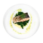 Lachs in Zitronenbutter, Spinat und Salzkartoffeln