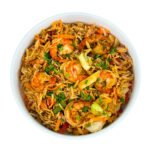 Pikante Riesengarnelen mit Reis und Zucchinispalten