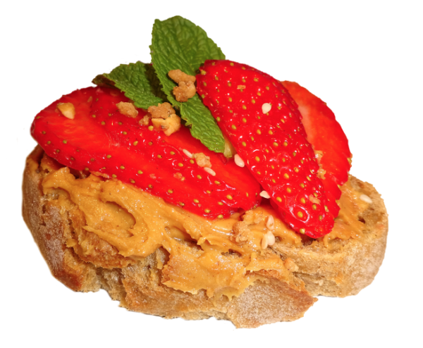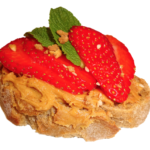 Süße Canapes mit Erdnusscreme, Erdbeere, Minze